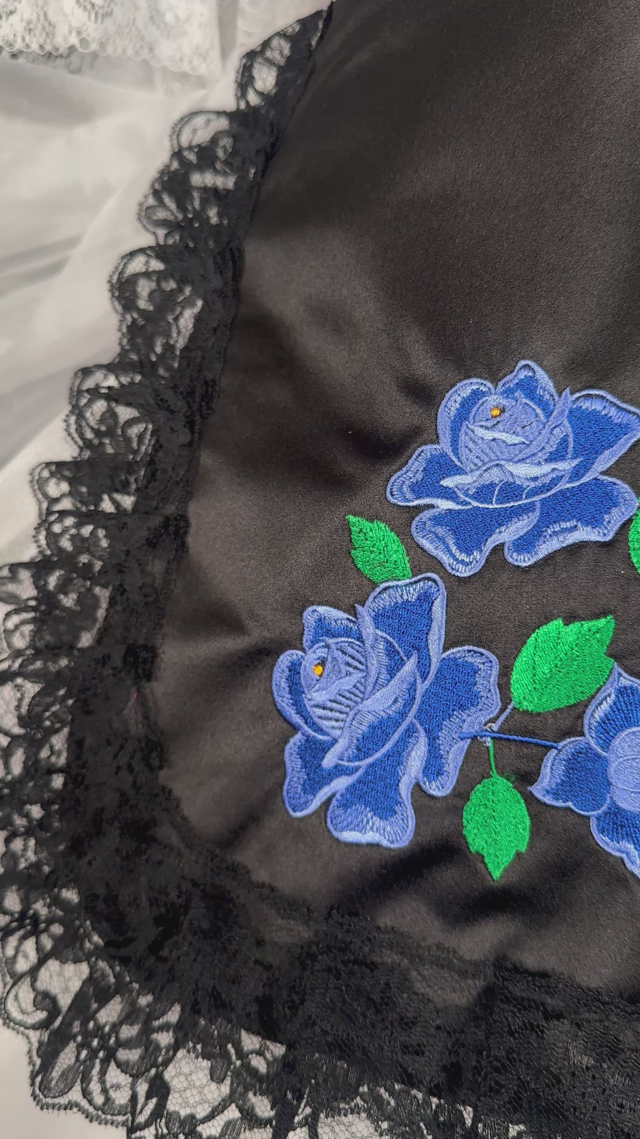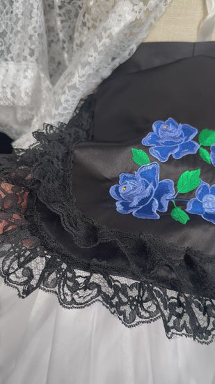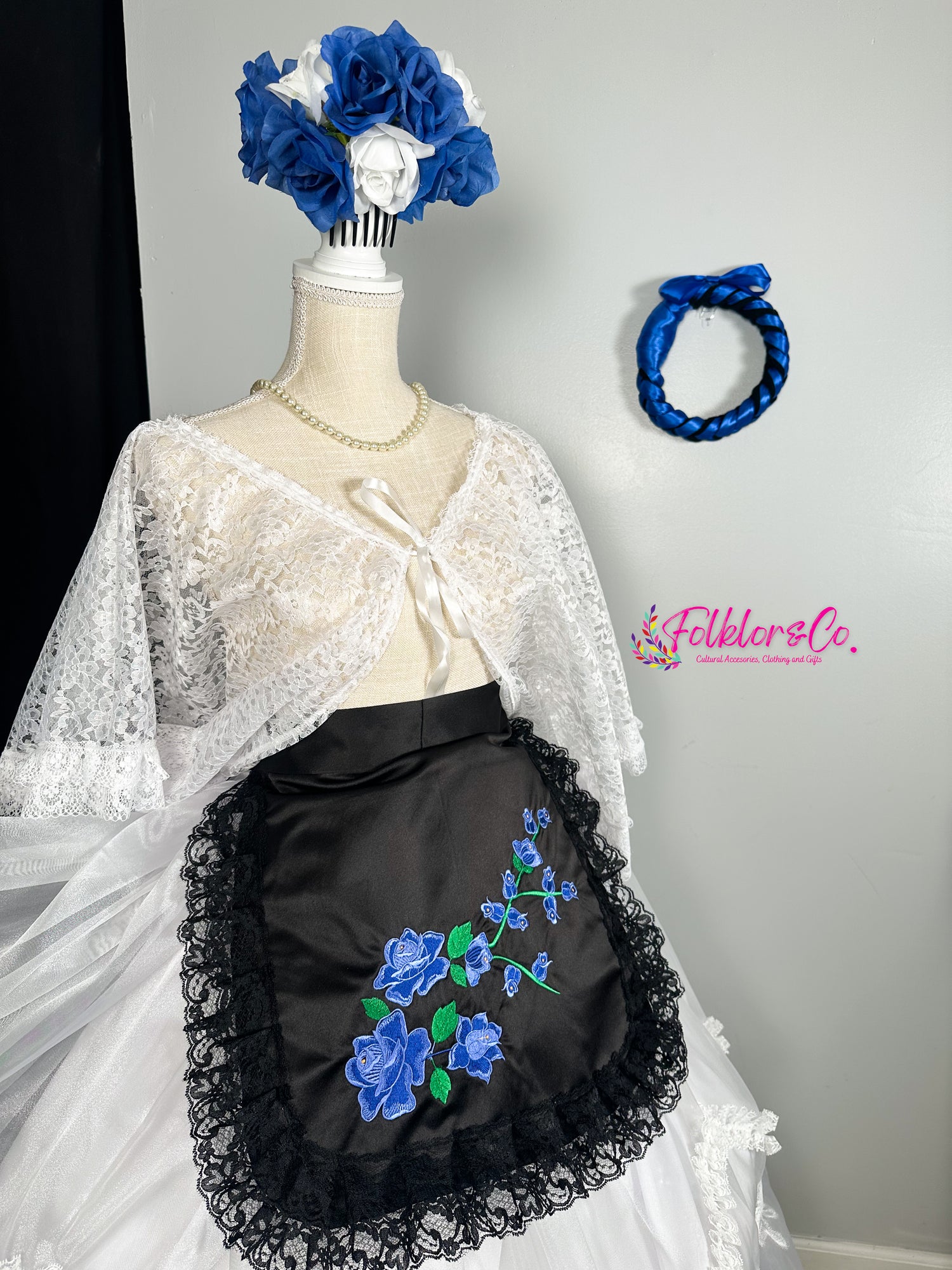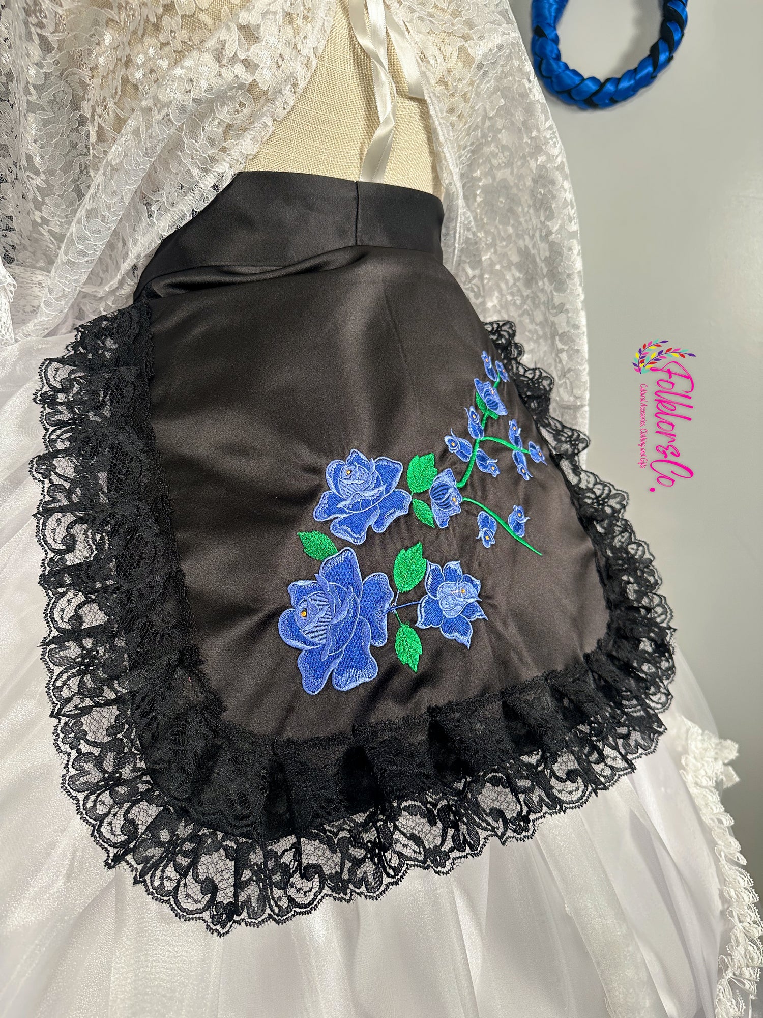 Introducing the Mandil de Veracruz! Enjoy the ultimate comfort and elegance of this beautiful apron with a satin finish and intricate embroidery.